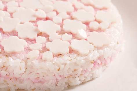 ③上部全体に桜でんぶを散らして①をまんべんなくトッピングする。