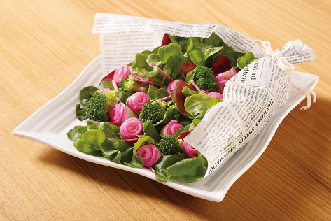 ④レタス・ブロッコリー・紅心大根など好みのやさいを並べ、②をちりばめる。