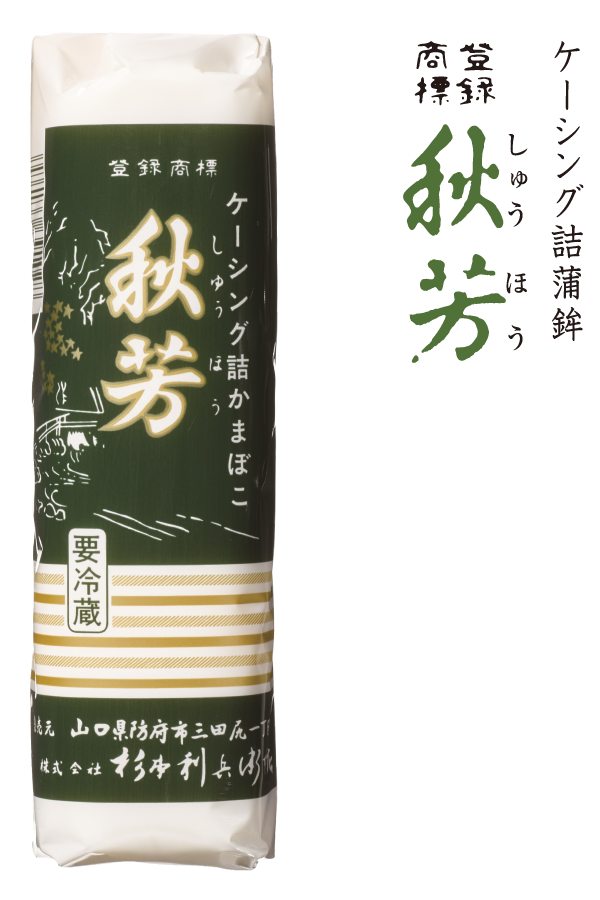 製法にこだわった、「白銀」と並ぶもう一つの顔「秋芳」。魚肉をフィルムに詰めてじっくりと加熱することで、プリプリの歯ごたえと高い保存性にたどり着きました。